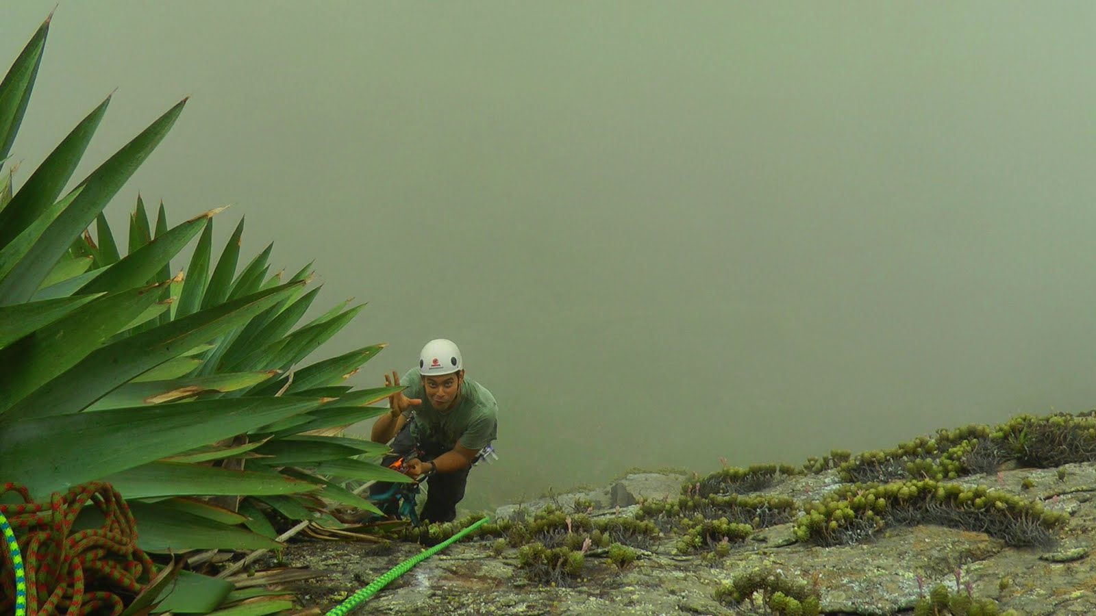 No sábado e no domingo eu e o Tatu fomos conquistando uma parte íngrime da parede, sob um tempo nublado com forte névoa, lembrando muito o climax da Serra dos Órgãos (RJ). E somado a isso, uma constante chuva, daquelas fininhas, que parecem não molhar, mas que aos poucos tu constata que tudo esta encharcado.